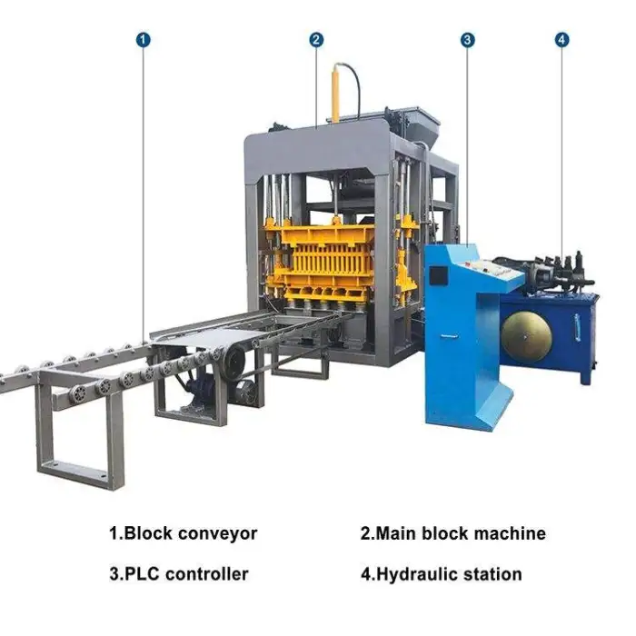 The hydraulic system in the QT5-15 machine ensures consistent pressure and quality in the brick-making process, enhancing durability.