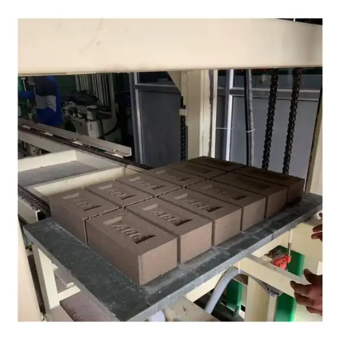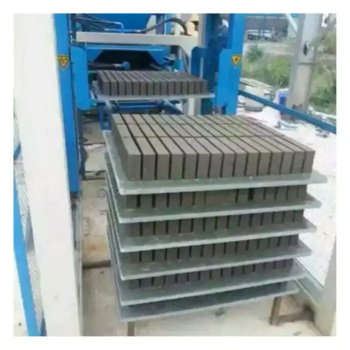 The QT5-15 can produce various types of bricks including hollow bricks, solid bricks, and paving stones.