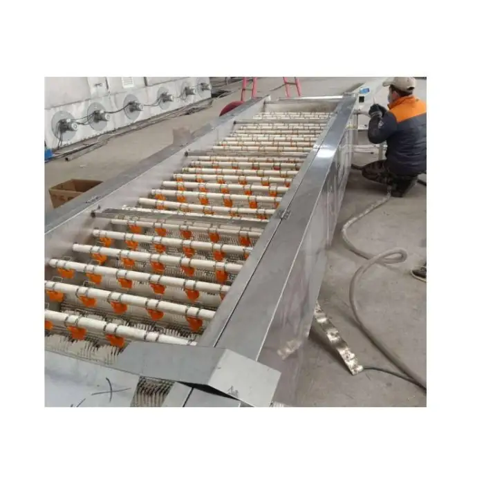 The machine is ideal for food processing industries, farms, and commercial kitchens that require efficient washing of delicate produce.