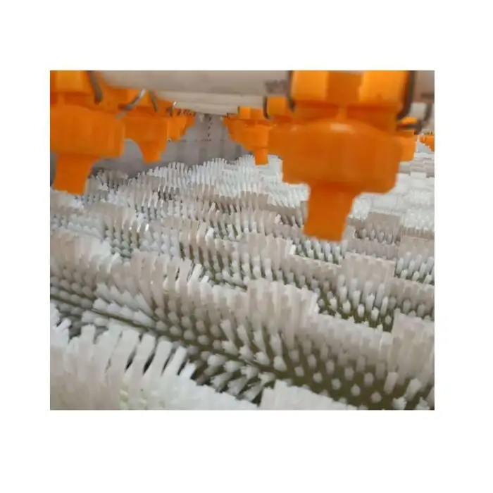 The Radish Sweet Potato Parallel Wool Roller Cleaning Machine is equipped with 24 nozzles for thorough cleaning action.