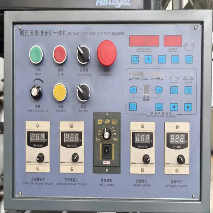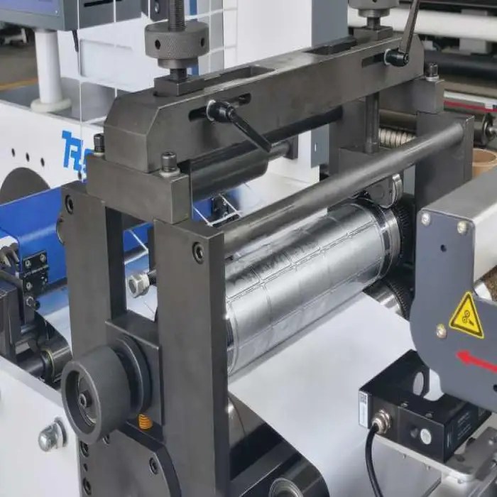 The Raloyal Small Roll machine is equipped with 8 sets of knives for efficient die-cutting.