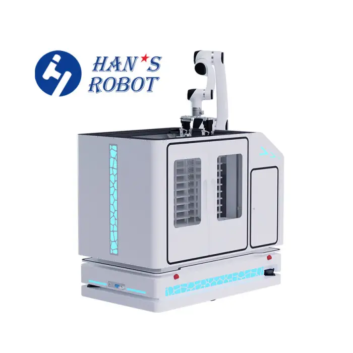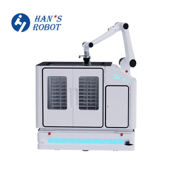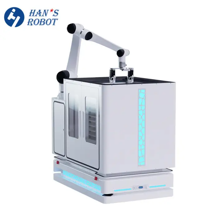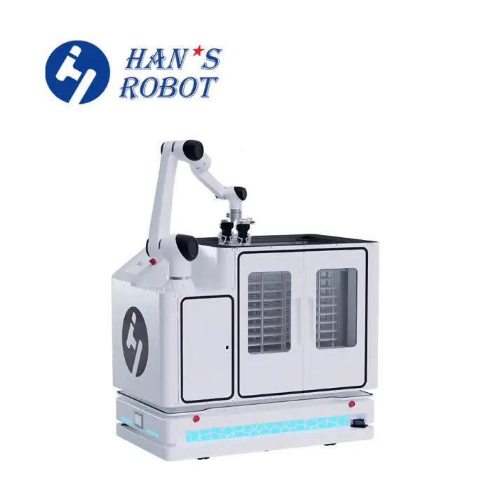 The robotic arm utilizes Laser SLAM (Simultaneous Localization and Mapping) for efficient navigation.