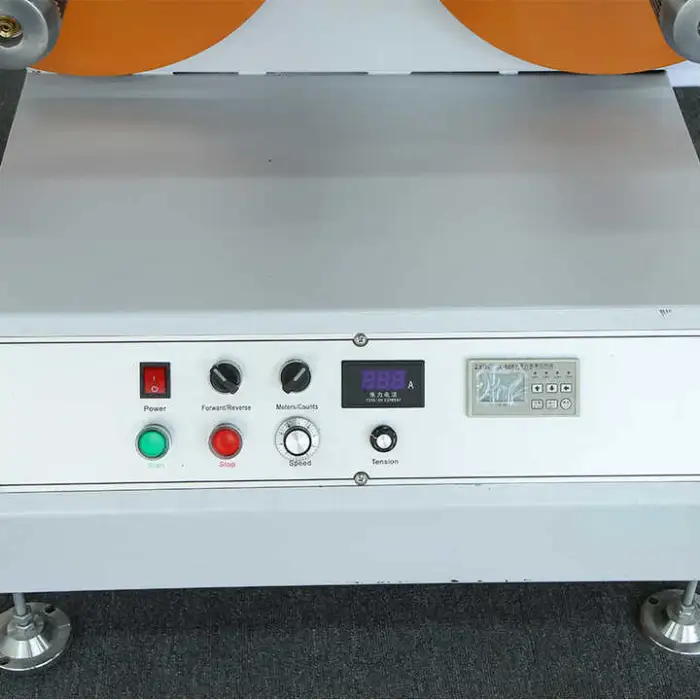 The working width of the Roll to Roll Label Counter Rewinding Machine is 450mm.