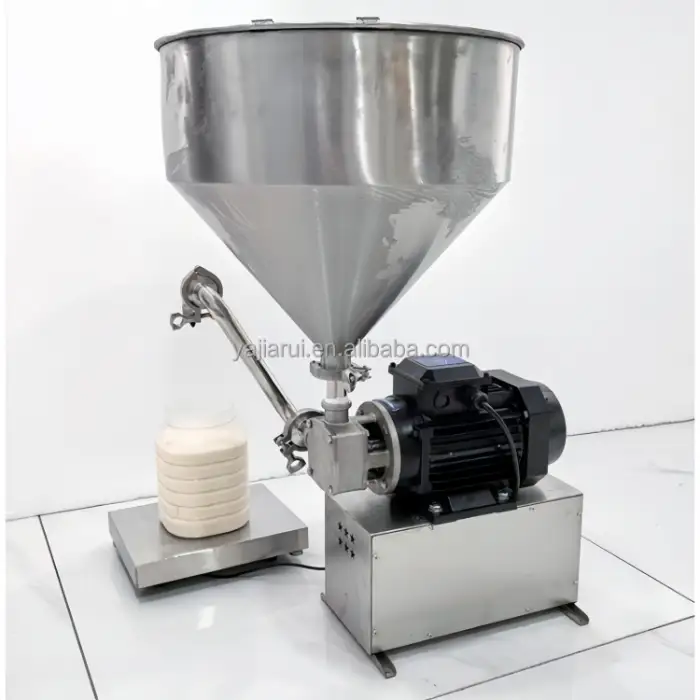 The Rotor Pump Filling Machine is designed to handle high viscosity products such as cheese, chocolate, and peanut butter, as well as other liquids like milk, water, oil, and juice.