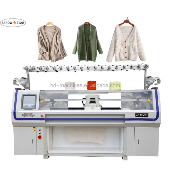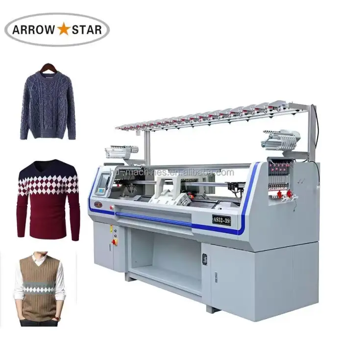 This machine is ideal for manufacturing sweaters, creating custom knitwear, and is useful in the fashion and textile industries.