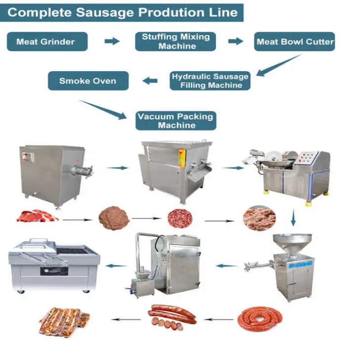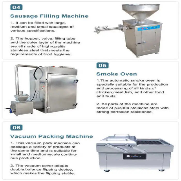 Key features include high efficiency in sausage production, low energy consumption, and high-speed performance.
