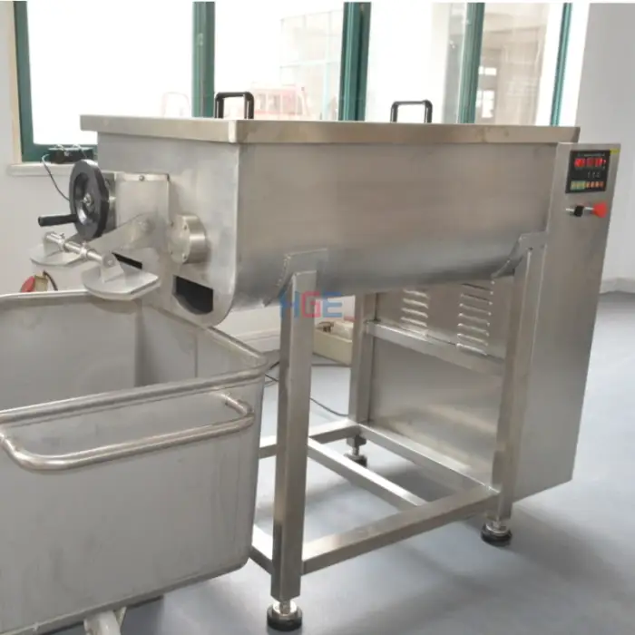 The Sausage Stuffer Mixing Machine has a capacity of 150 liters, capable of handling 60 to 80 kg of ingredients per hour.