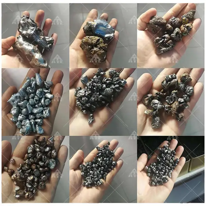 The machine uses D2/SKD-11 or customized blades for efficient metal crushing.