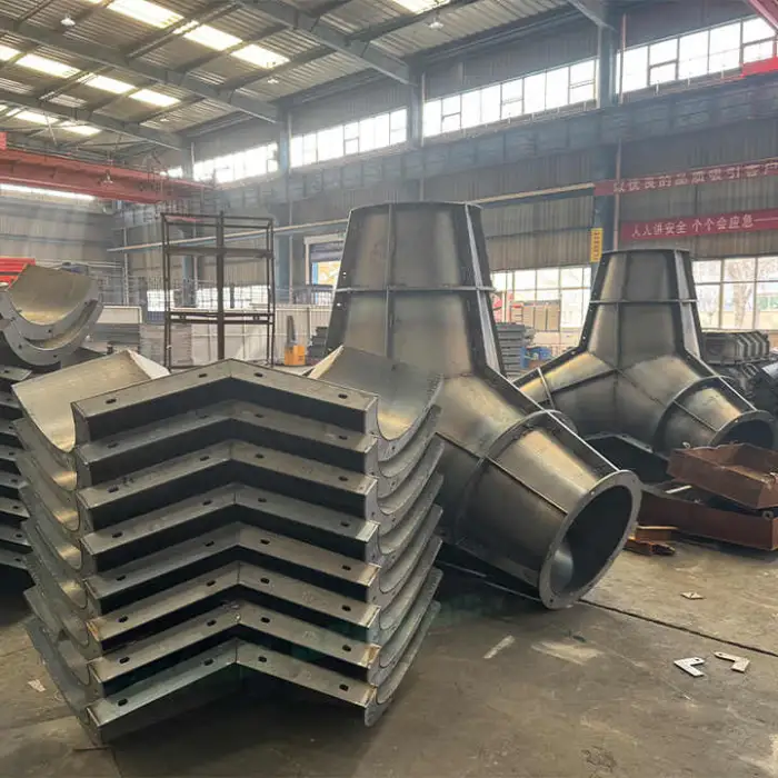 This steel four-legged concrete mold is used to produce pre-cast concrete anti-wave (breakwater) stones and related beach protection elements for coastal protection projects.