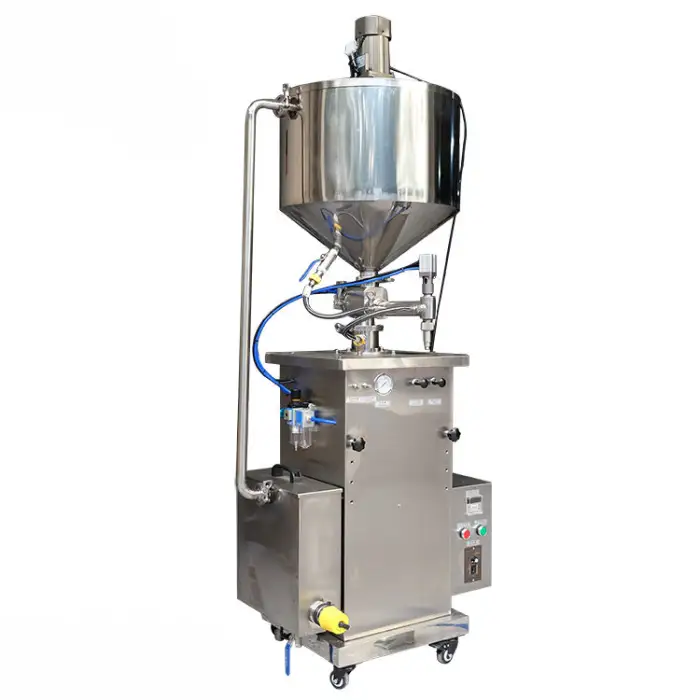Yes, the machine includes both a heater and a mixer to melt products to the right consistency before filling.