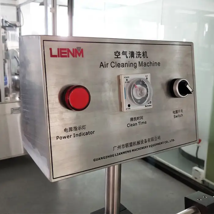 The machine uses compressed air technology to effectively clean the insides of bottles and tubes.