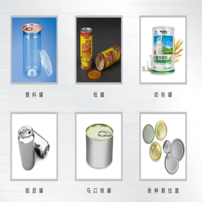 The machine is designed to handle a range of small to medium cans and bottles, but exact size/shape limits depend on tooling and setup. Provide samples or detailed dimensions to the manufacturer for confirmation and any needed tooling adjustments.