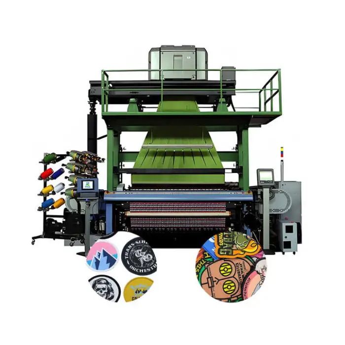 The machine is designed to produce woven labels, including custom clothing labels and promotional materials.