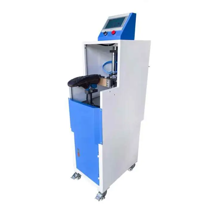 Yes. The compact, single-head design allows integration into larger shoe production lines. Integration details (conveyors, timing, controls) should be discussed with the supplier or your production engineer to ensure compatibility.