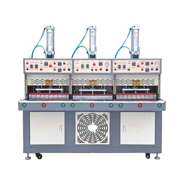 The heat cooling welding process uses controlled temperatures to bond materials together without stitching, ensuring a strong and durable seam.
