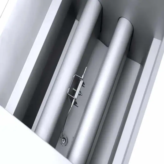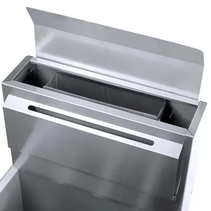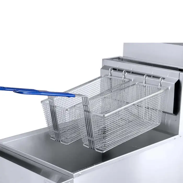 The fryer is constructed from durable food grade stainless steel, ensuring safety and longevity.