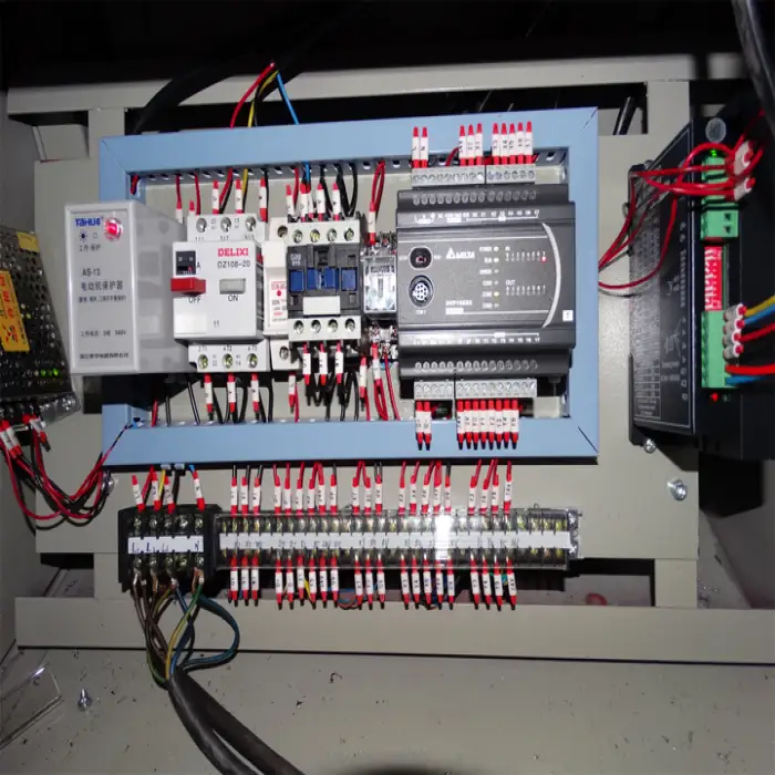 The core components include a motor and a PLC (Programmable Logic Controller).