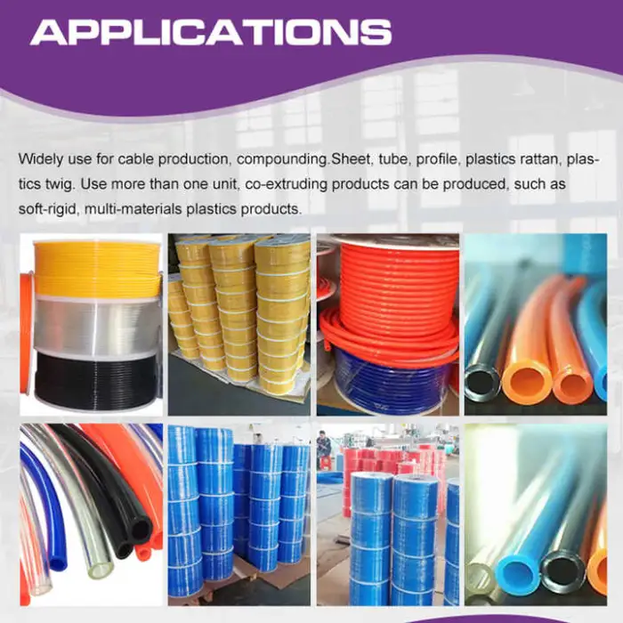 This extruder can be used to produce bars, wires, pipes, granules, sheets, films, plates, and filaments.