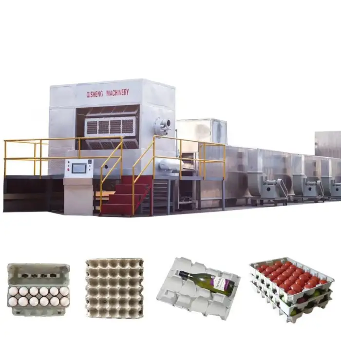 The machine is manufactured by Qisheng, known for producing high-quality pulp molding equipment.