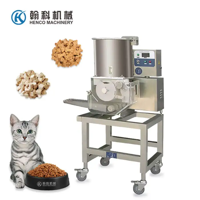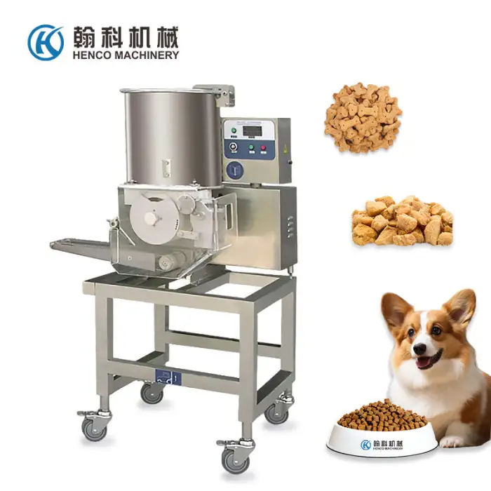The Small Business Full Production Line Pet Dog Food Extruder can produce both wet and dry pet food, including biscuits and pellets.