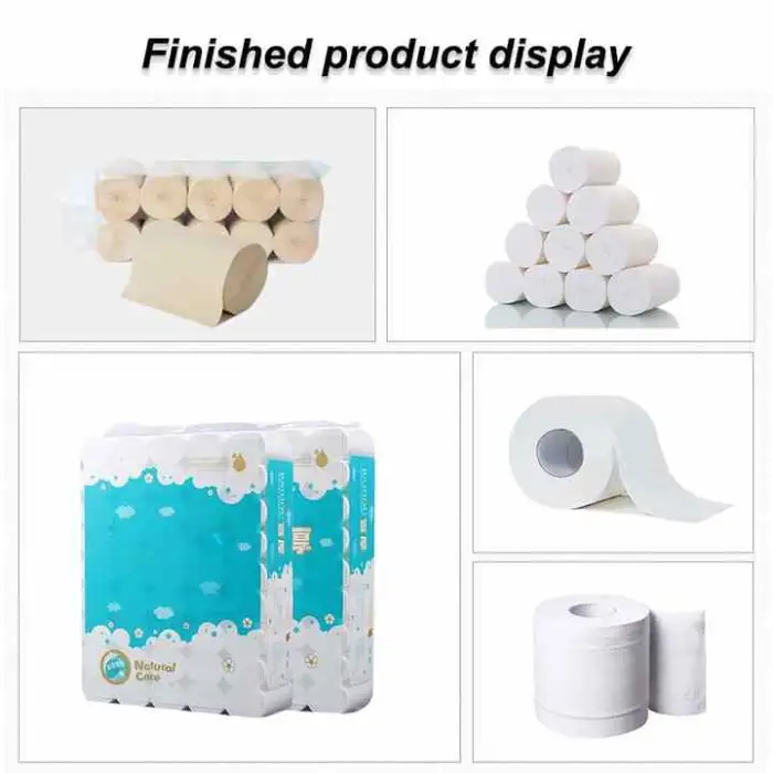 It produces toilet tissue paper rolls (rewound rolls). Finished roll size options depend on your tooling and slitting settings—discuss desired roll diameters and core sizes with the supplier.