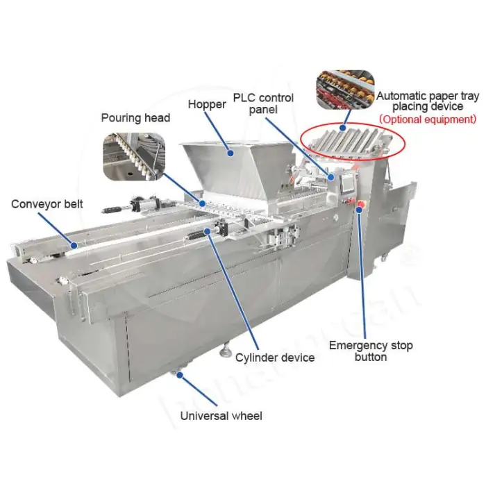 The machine is constructed from food-grade stainless steel, ensuring safety and durability.