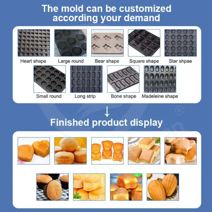 The OCEAN machine can create a variety of baked goods including cupcakes, sponge cakes, muffins, madeleines, and brownies.
