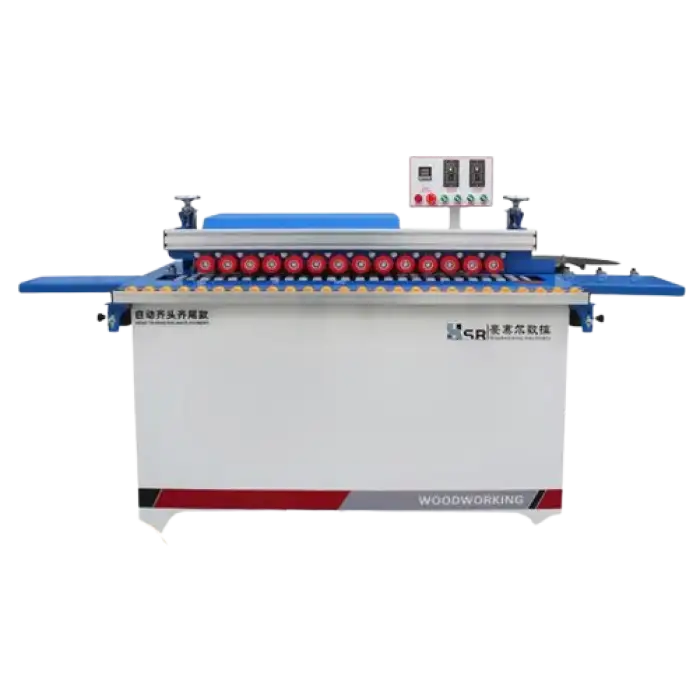 This edge banding machine is designed for sealing edges of MDF panels and is suitable for various wooden materials.