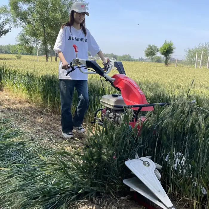 The gear drive system and easy operation contribute to the machine's efficiency in cutting various crops.