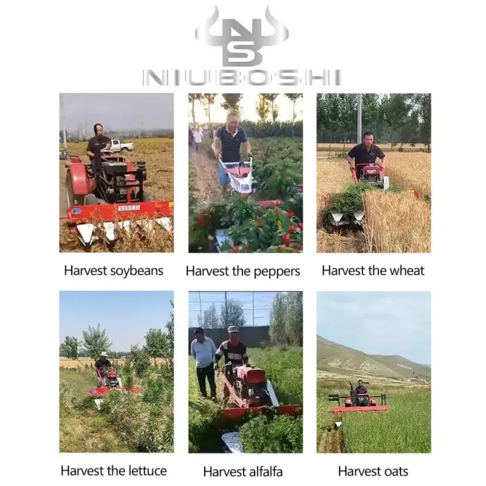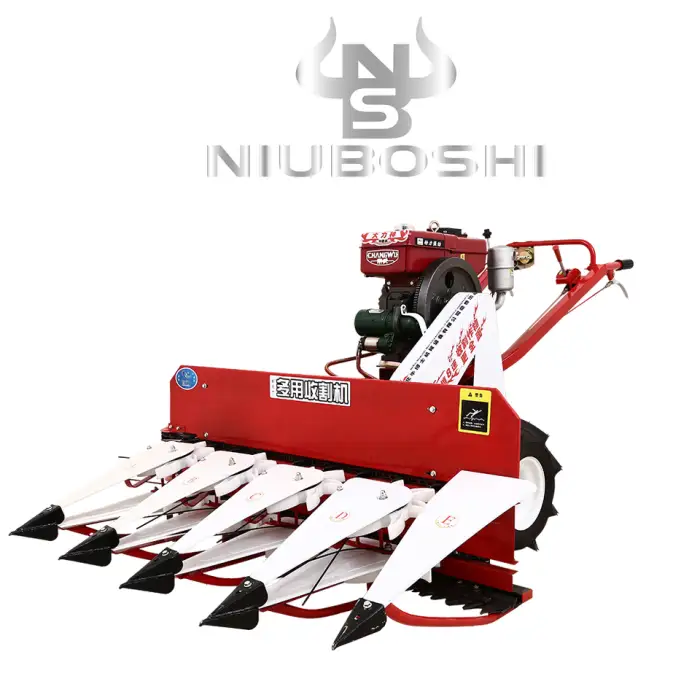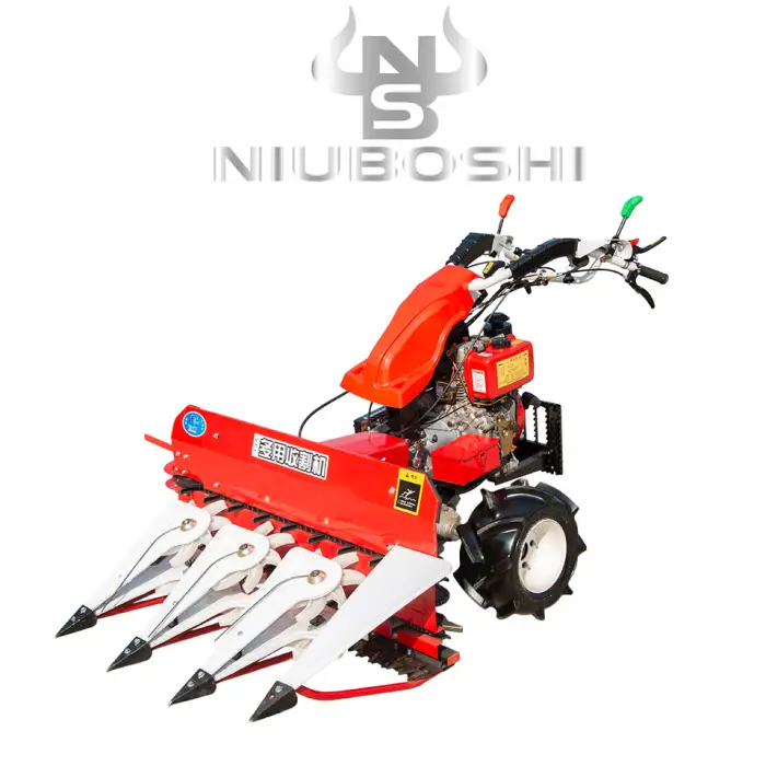 The machine is designed to cut various crops, including wheat, rice, corn, paddy, sorghum, alfalfa, and even grass.