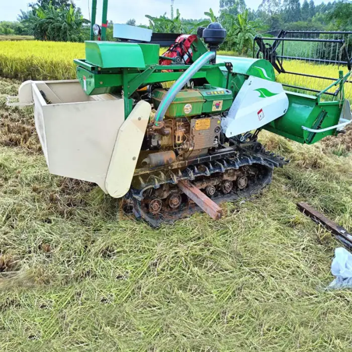 The Small Rice Soybean Combine Harvester 102 is versatile and can harvest rice, wheat, soybeans, peas, corn, and potatoes.