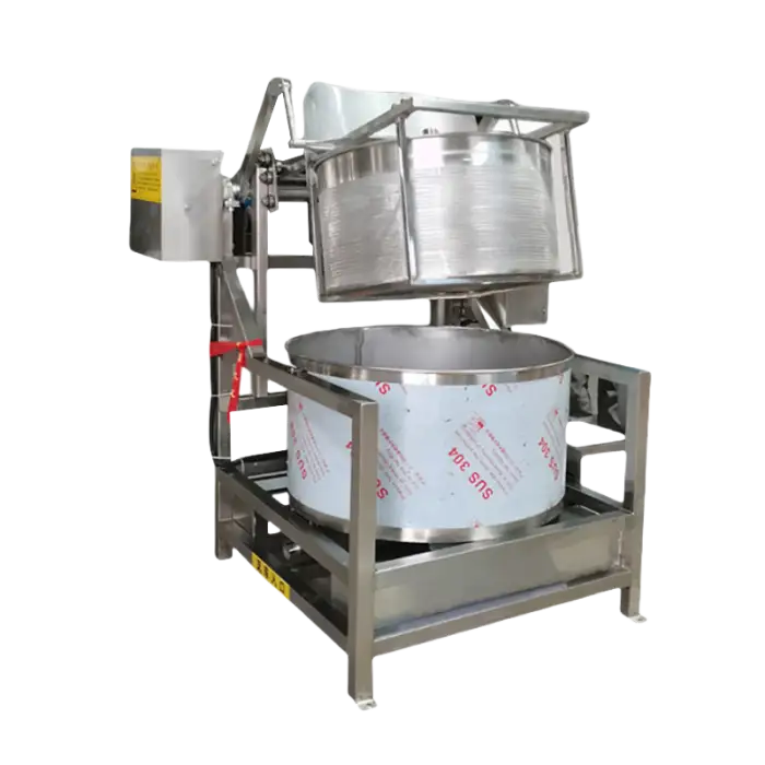 The machine is constructed from food-grade 304 stainless steel, ensuring safety and durability.