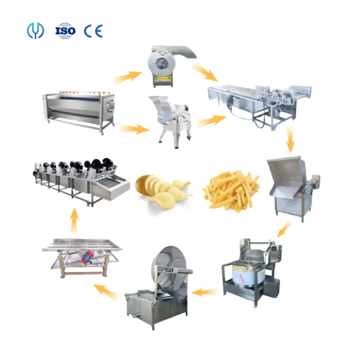 The Small Scale 100kg/h Potato Chips Production Line is designed to produce potato chips and French fries.