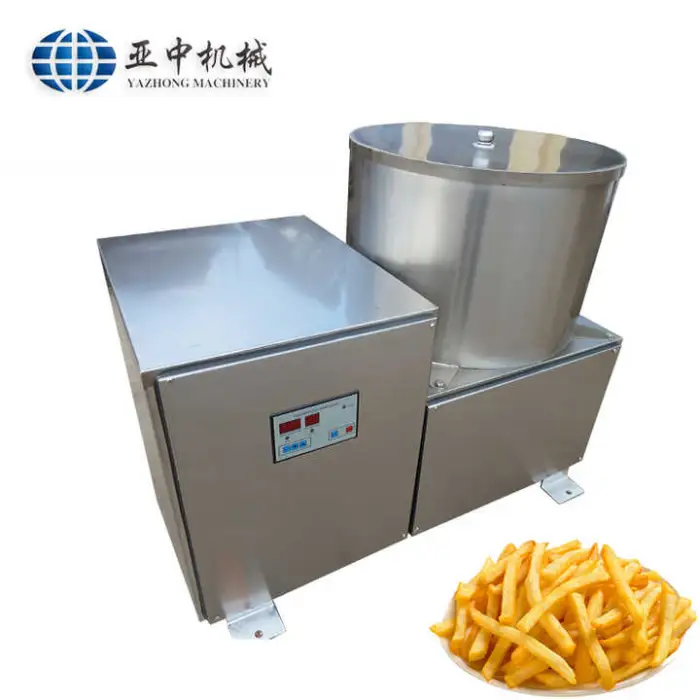 The Small Snack Equipment French Fries Dewatering Machine operates at 1100W.