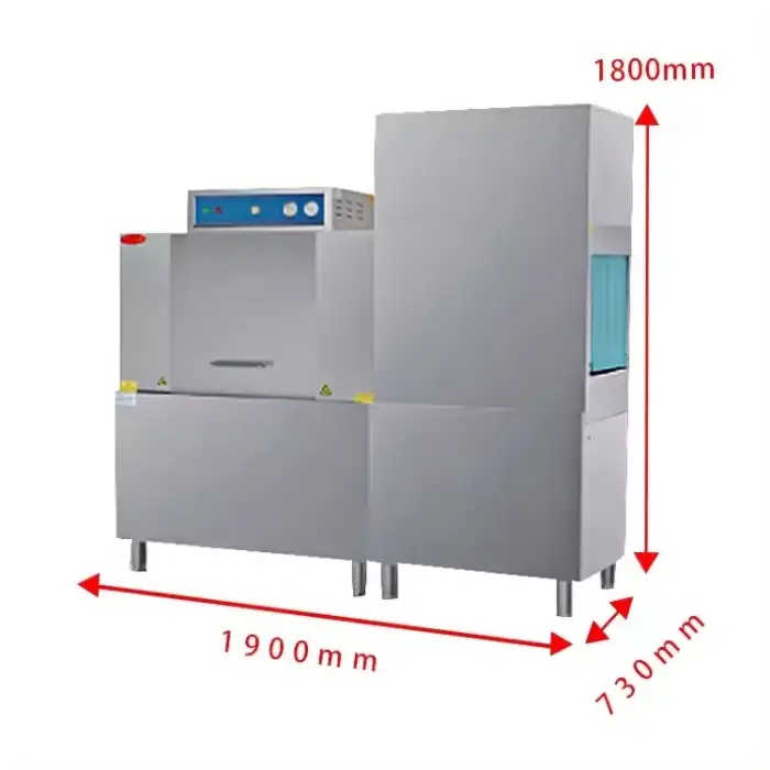 The dimensions of the dishwasher are 1900mm x 730mm x 1800mm.