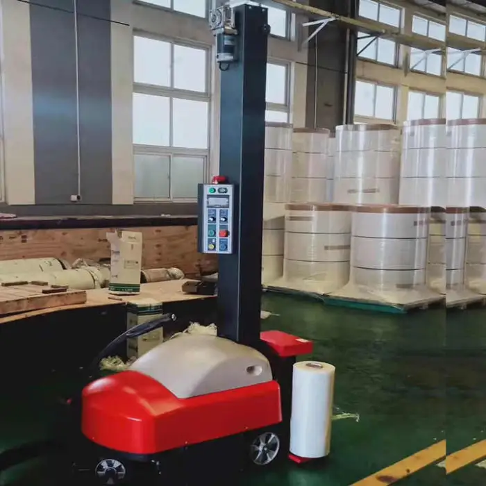 The Smart Stretch Pallet Self-walk Wrapping Machine is designed for indoor use; it is best to consult the manufacturer regarding outdoor applications.