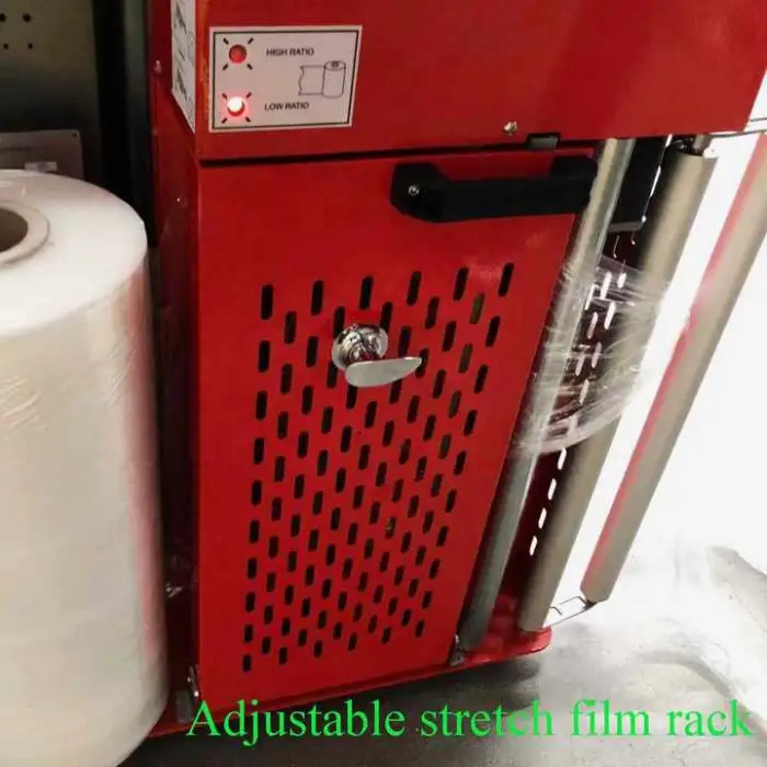 The machine is designed to work with plastic stretch film for wrapping pallets.