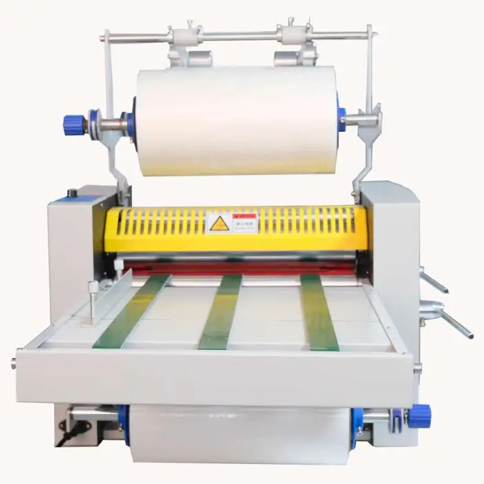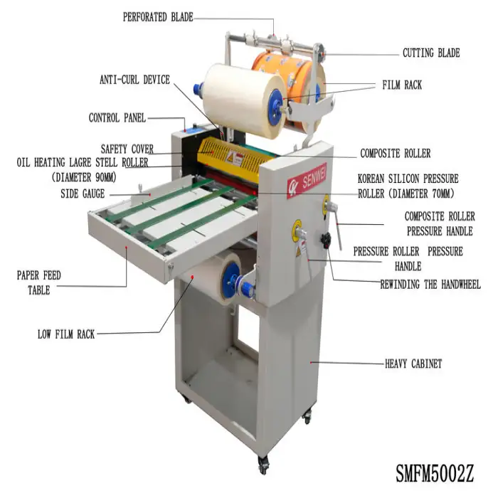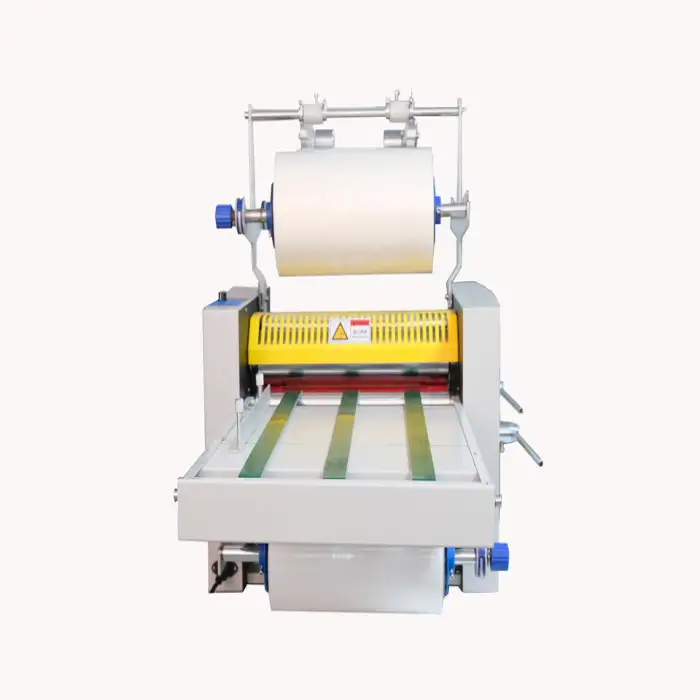 This laminating machine can laminate paper with a thickness ranging from 125 to 350gsm.