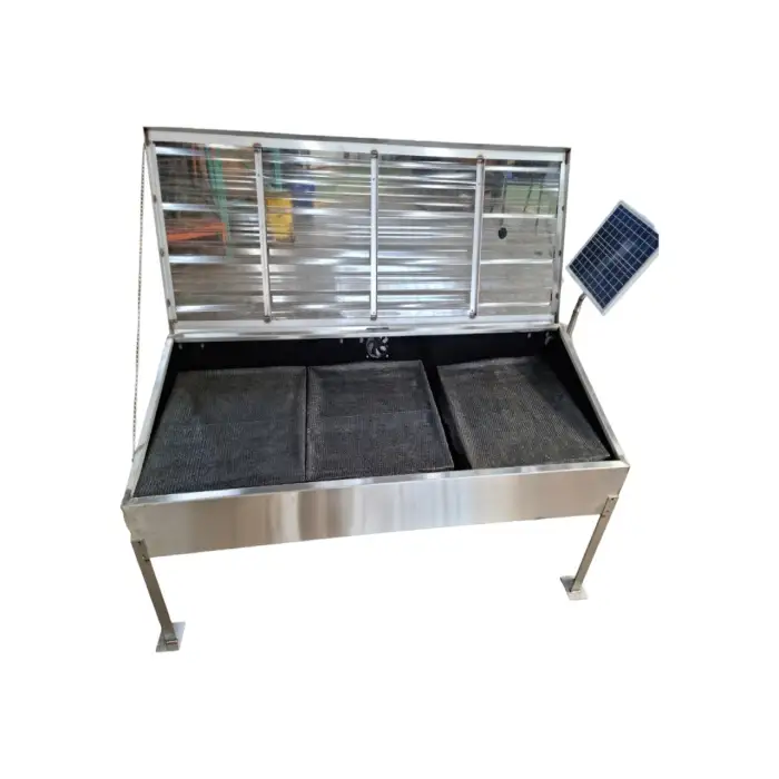 The Solar Drier utilizes direct sunlight for efficient drying, combined with two extractive solar fans that improve air circulation.