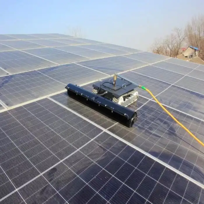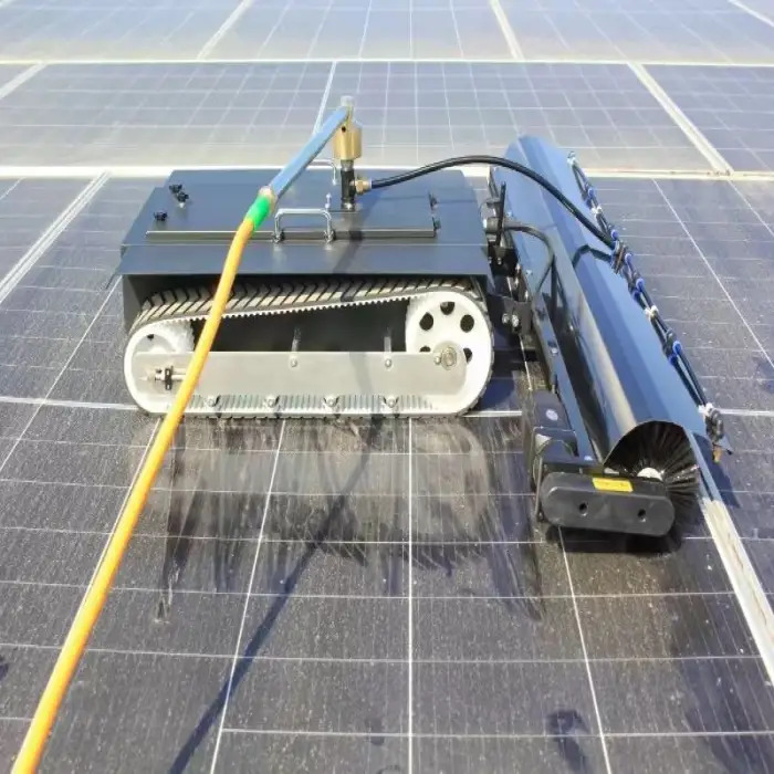 The tracked design allows the robot to operate effectively on smooth solar panel surfaces.