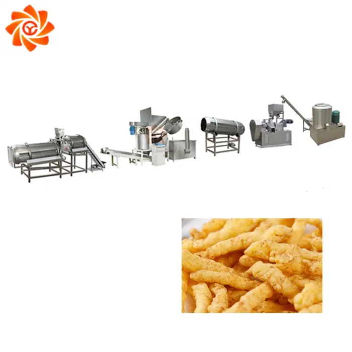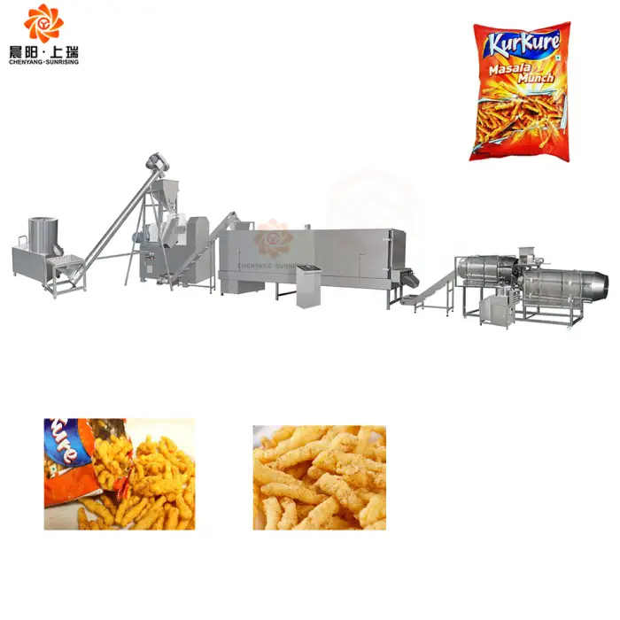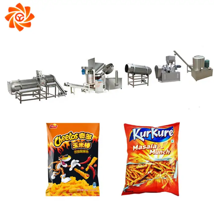 The machine can produce between 120 to 250 kg of snacks per hour, making it highly efficient for snack production.