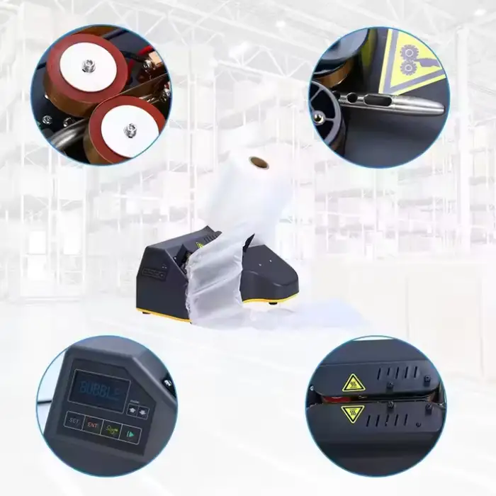 The machine fills air cushions with air, providing excellent protection for your products during shipment.