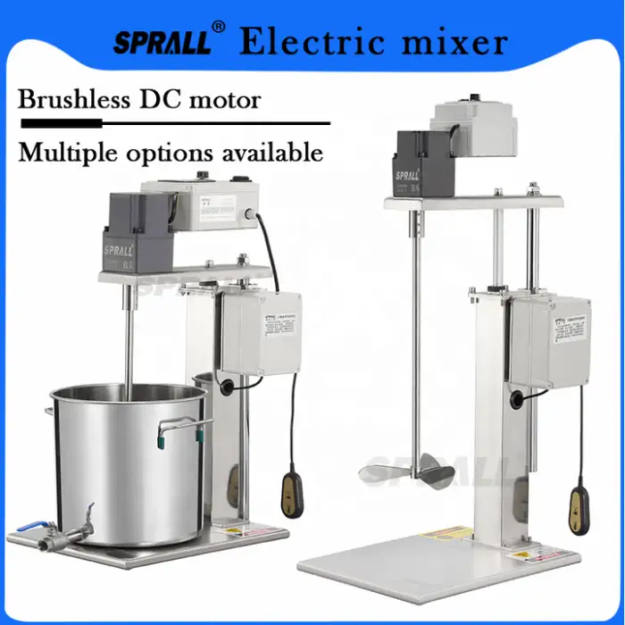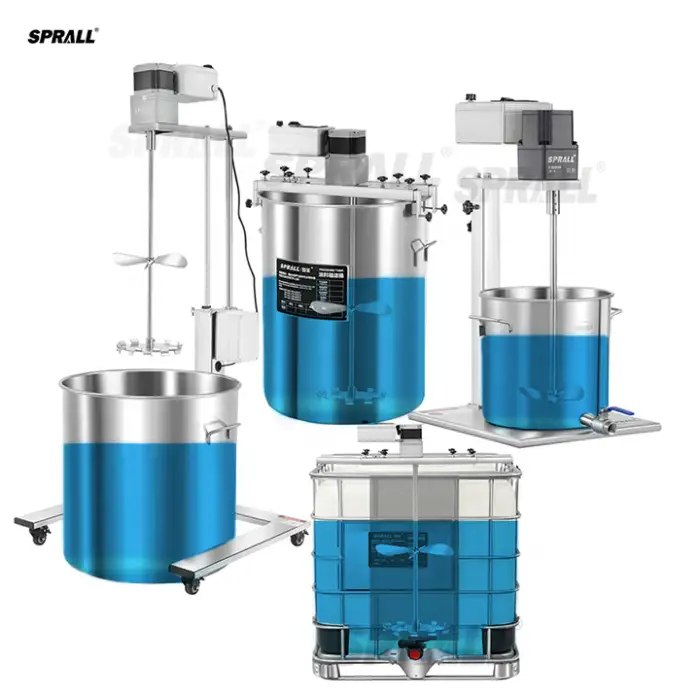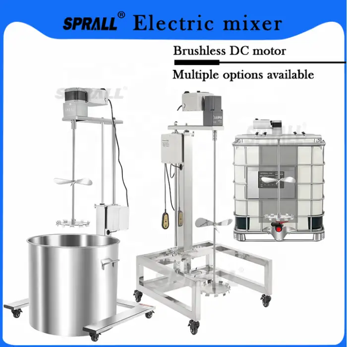 The SPRALL mixer can handle a variety of materials including plastics, chemicals, food-grade ingredients, paints, and soaps.