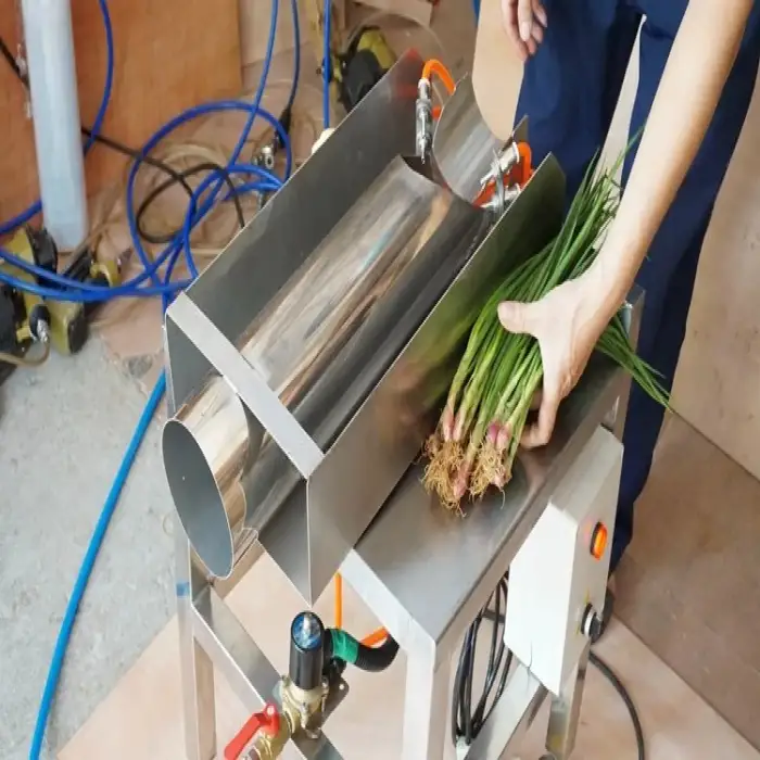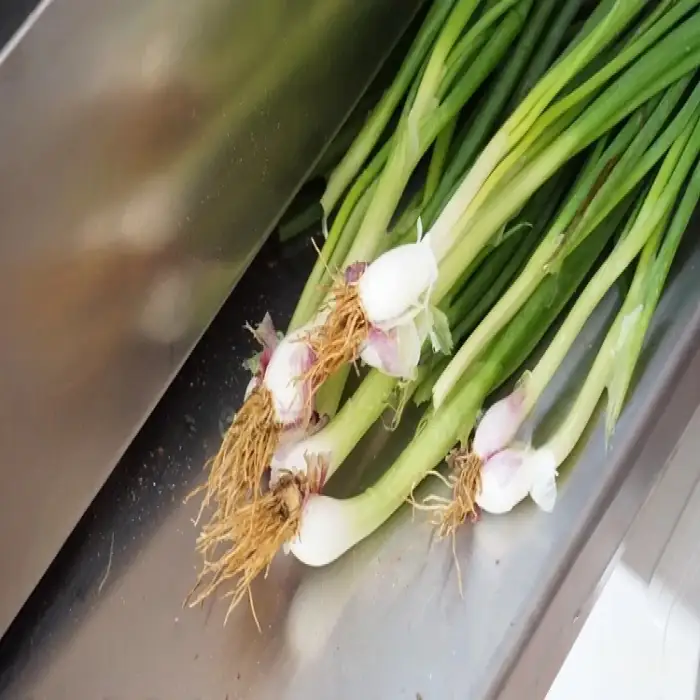 The Spring Onion Peeling Machine is designed to efficiently peel green onions, shallots, and is also suitable for various other vegetables like corn and onions.