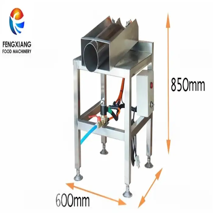 The dimensions of the Spring Onion Peeling Machine are 600 mm in length, 800 mm in width, and 850 mm in height.