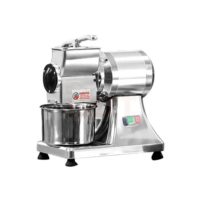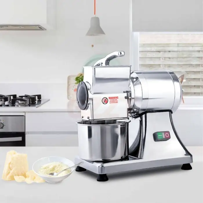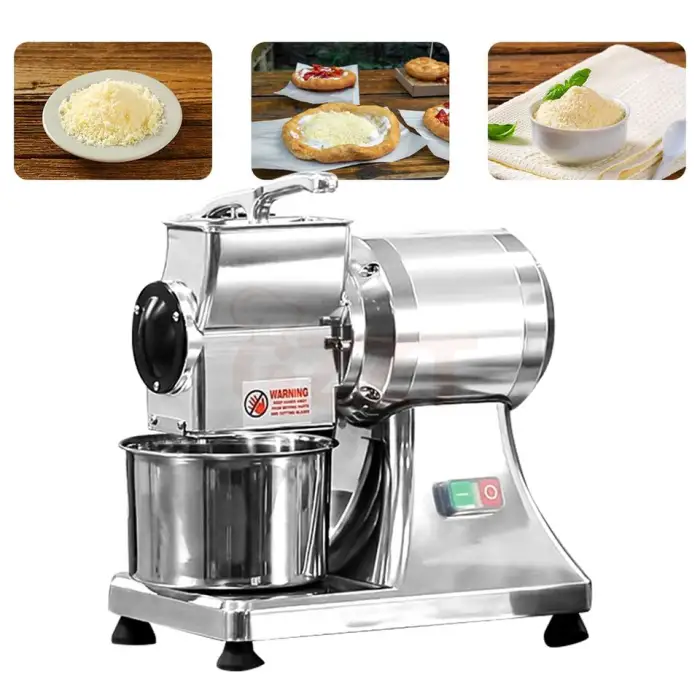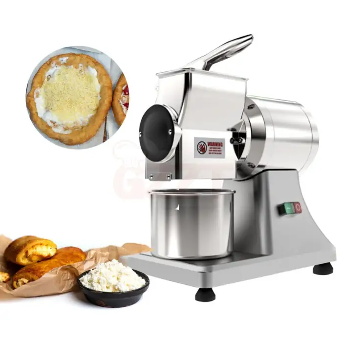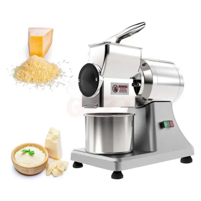 This machine is ideal for shredding hard cheeses and grating chocolate bars, making it versatile for various applications.