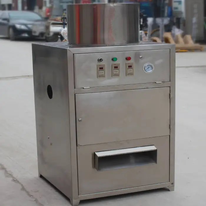 The machine uses a combination of mechanical action and friction to remove the skin from garlic cloves efficiently and quickly.