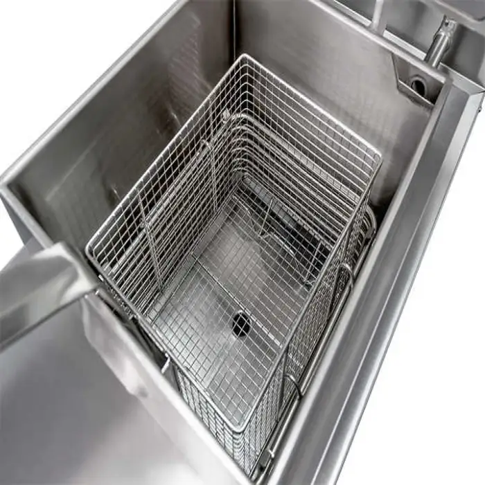 The fryer is constructed from high-quality stainless steel, ensuring durability and longevity.