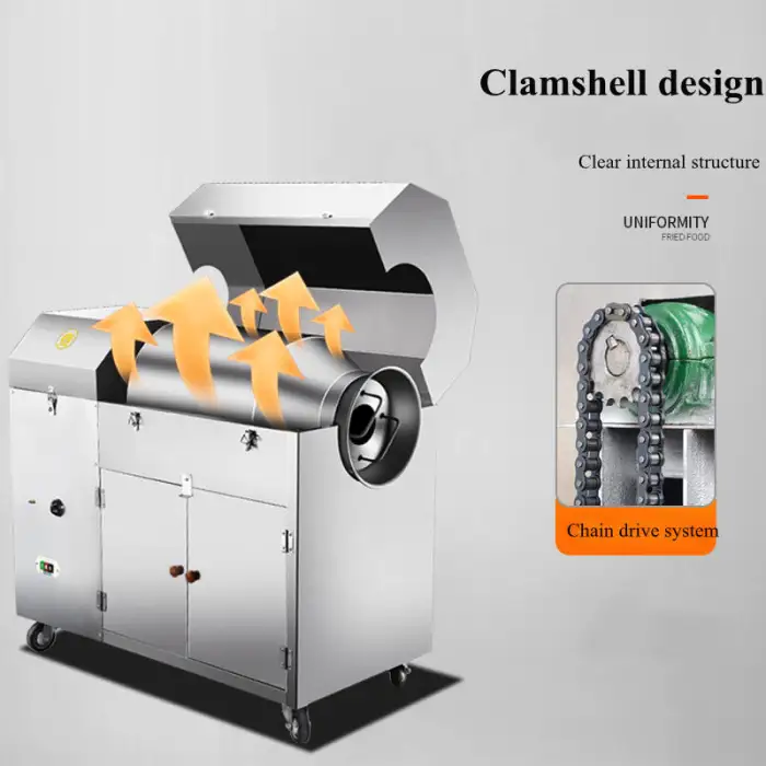 The Stainless Steel Sesame Seed Roaster Machine is designed primarily for sesame seeds but is also suitable for roasting other similar seeds.