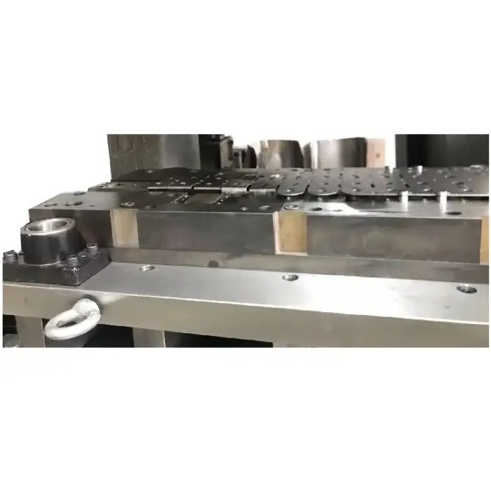 Primarily, the automotive industry benefits from this stamping mould, but it can also be used in other manufacturing sectors needing precision metal components.